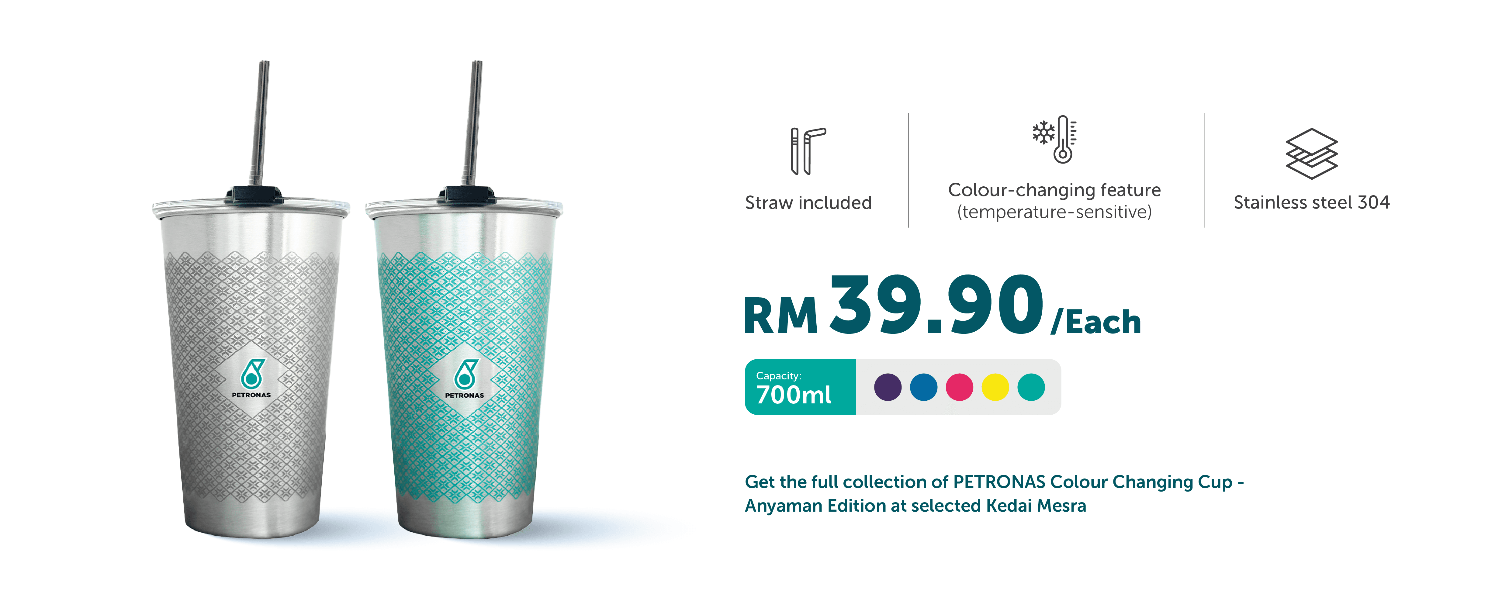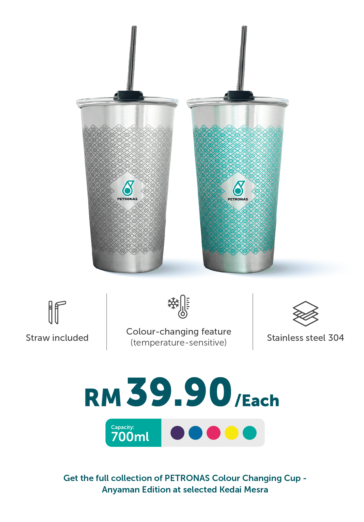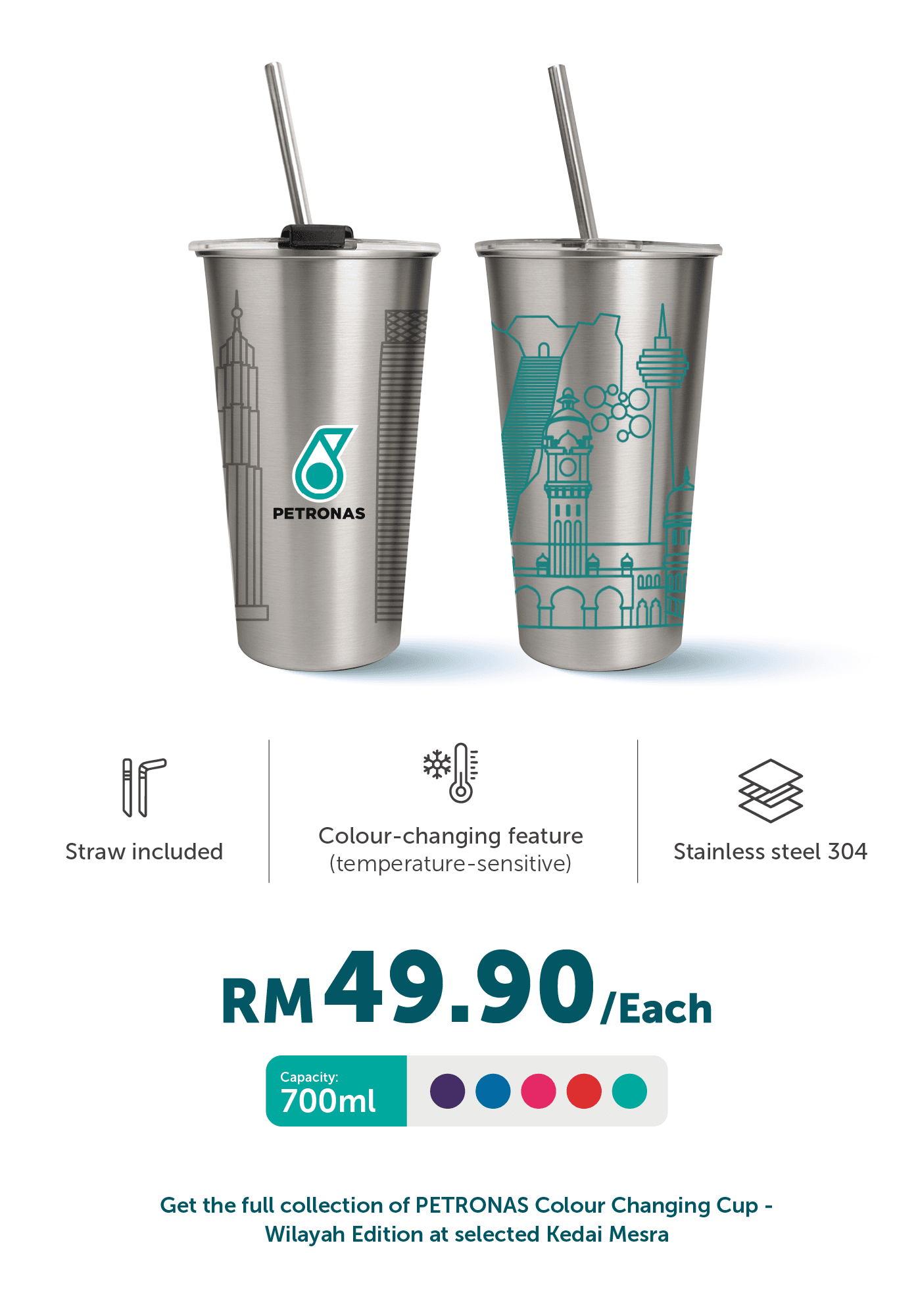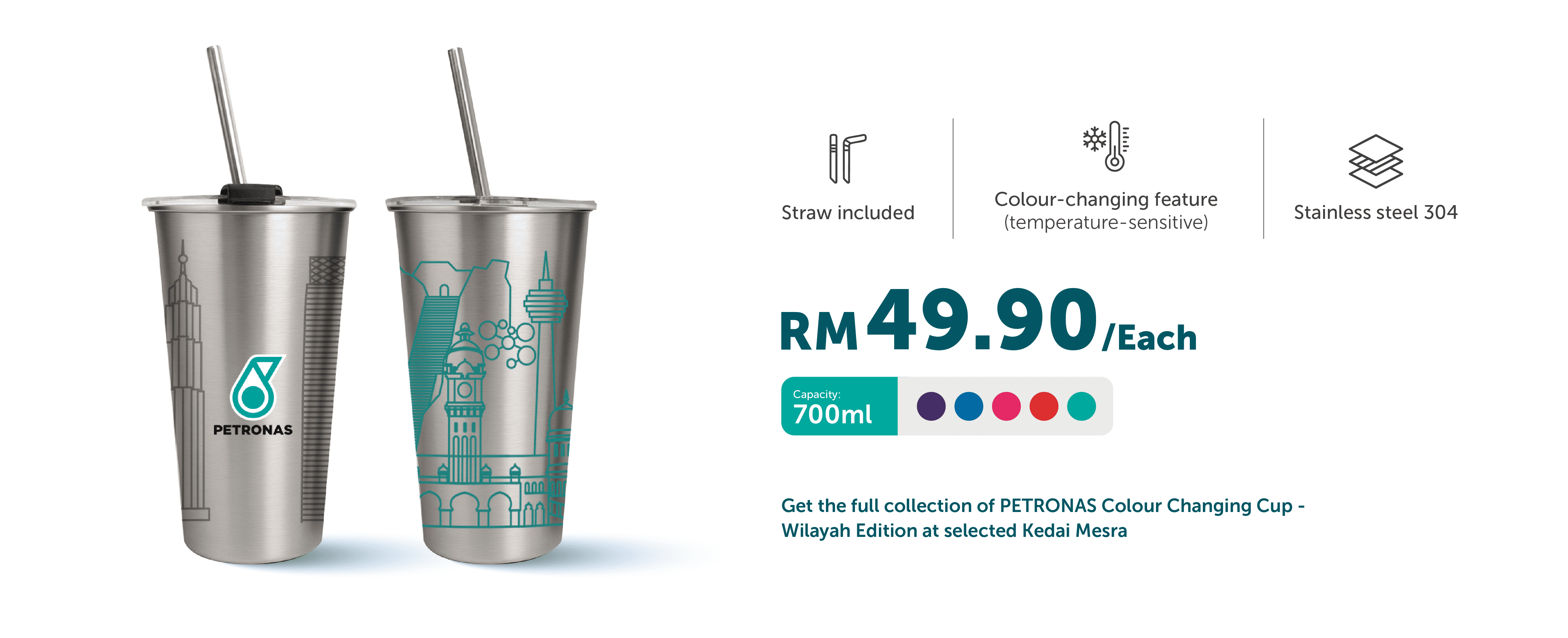 Visit your nearest PETRONAS station to get the exclusive colour changing cup, available from 19 Sept 2025 while stock lasts. Availability may vary by location, so check with your nearest PETRONAS station for details.