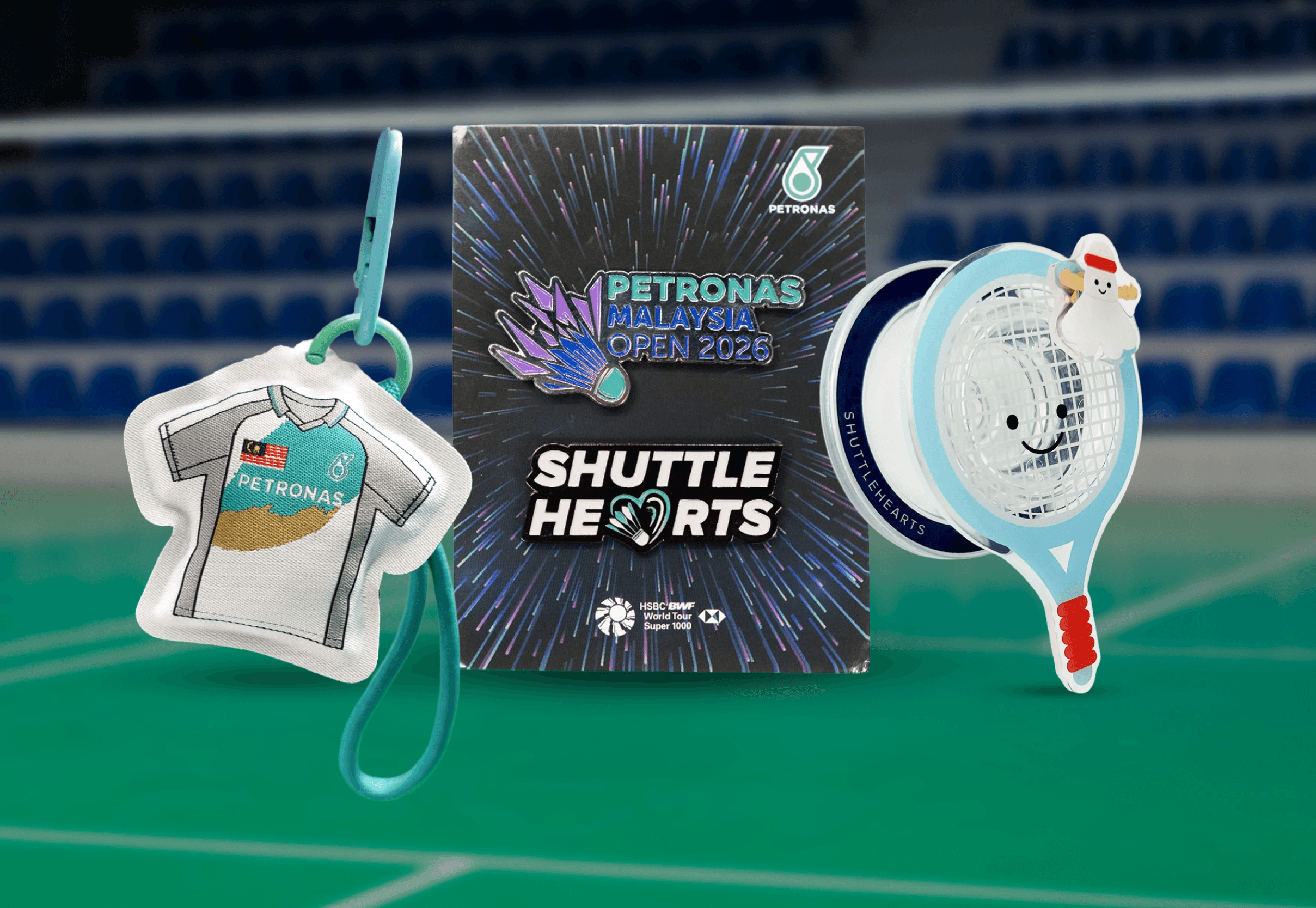Shop official PETRONAS Malaysia Open 2026 and Shuttlehearts merchandise and accessories.